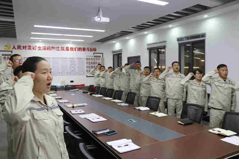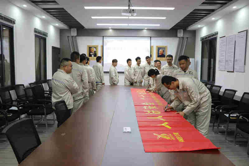 會(huì)議最后,舉行了“安全月”簽字儀式,項(xiàng)目全體員工紛紛在條幅上鄭重簽下了自己的名字,以己之名承諾安全重任。