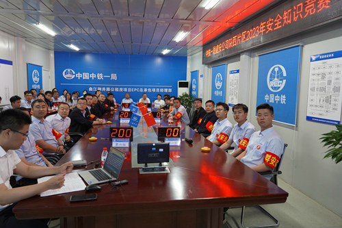 (西安訊)為進一步做好安全生產(chǎn)工作,增強全體員工和安全員的工作積極性和安全責(zé)任意識,提高風(fēng)險分級管控和隱患排查治理能力,最大限度消除安全生產(chǎn)隱患,建安公司于5月30日在曲江御井路項目部舉辦陜西片區(qū)安全知識競賽活動。中鐵一局建安公司工會主席、副總經(jīng)理楊東雷、建安公司安質(zhì)部部長趙小峰,西安建筑分公司黨總支書記楊波、西安建筑分公司安全質(zhì)量總監(jiān)蔣婷到會指導(dǎo),來自陜西片區(qū)的9支代表隊的27名選手參加本次活動。