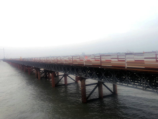 福廈鐵路安海灣特大橋施工棧橋搭設(shè)完成
