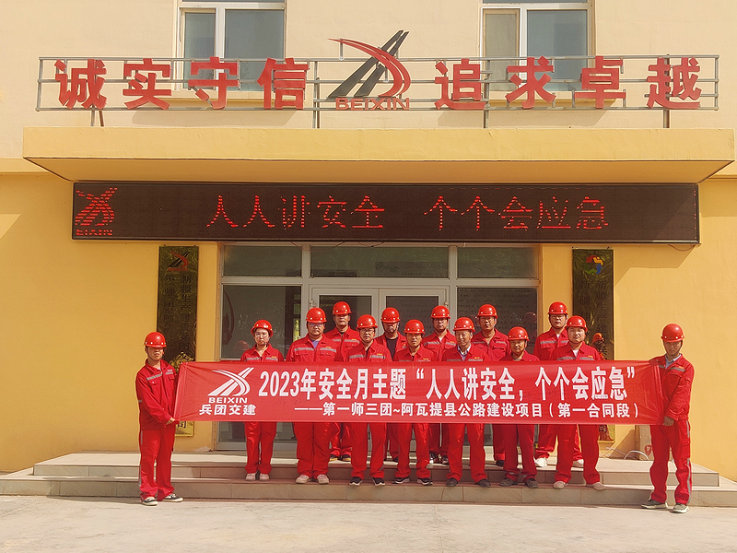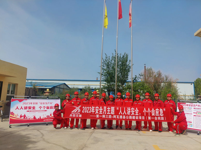 阿拉爾訊(通訊員 吳玉梅)為牢固樹立“人民至上、生命至上、安全第一”的理念,落實好“人人講安全、個個會應急”安全生產(chǎn)月主題,推動安全責任落實,5月31日,兵團交建公司第一師三團-阿瓦提縣公路項目一標段在項目駐地舉行“安全生產(chǎn)月”活動啟動儀式,吹響“安全生產(chǎn)月”號角。