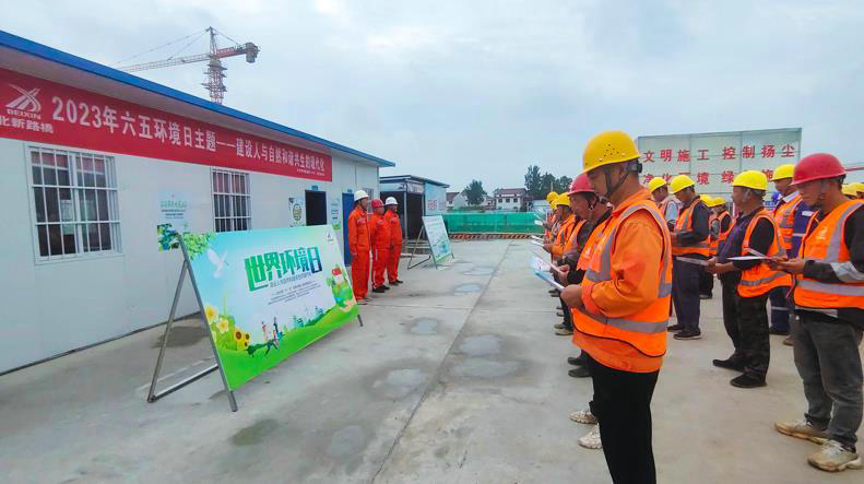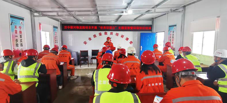 6月5日,北新路橋集團西安分公司漢中褒河物流園項目圍繞“建設(shè)人與自然和諧共生的現(xiàn)代化”主題,積極開展“世界環(huán)境日”宣教活動。