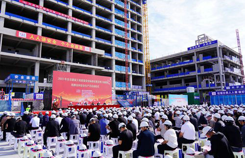 當天,榆林市2023年全市建設工程質(zhì)量安全標準化暨文明工地現(xiàn)場觀摩會在榆林市公安局業(yè)務技術用房及大數(shù)據(jù)應用中心項目部舉辦,榆林市住建局、應急局、生態(tài)環(huán)保局、公安局、榆林高新技術產(chǎn)業(yè)開發(fā)區(qū)管理委員會應急管理局主要領導、各縣市區(qū)住建局分管負責人、質(zhì)量安全監(jiān)督機構(gòu)負責人、中心城區(qū)各在建項目項目負責人等500余人組成的觀摩團深入?yún)⑦x工地進行觀摩交流。