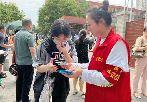“我們應(yīng)該減少擔(dān)心和焦慮,為考生們營造輕松的考試環(huán)境,家長們首先要放平心態(tài),把祝福和信任送給孩子,順其自然反而會(huì)有驚喜收獲。”志愿者們與家長溝通道。