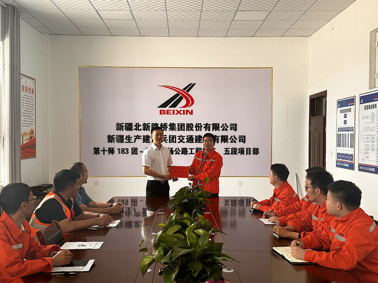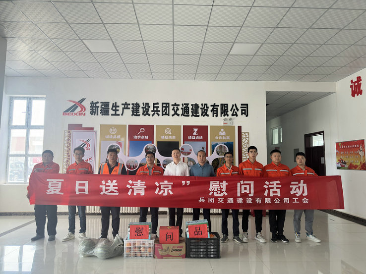 北屯訊(通訊員 臧明超)6月14日,兵團(tuán)交建公司黨委副書記、紀(jì)委書記、工會(huì)主席李軍赴第十師S318-187團(tuán)-183團(tuán)青河農(nóng)場(chǎng)項(xiàng)目,開展“夏日送清涼 關(guān)懷到一線”慰問(wèn)活動(dòng),代表公司黨委以及工會(huì)送去親切的問(wèn)候,為奮戰(zhàn)在一線的職工送清涼,鼓干勁。