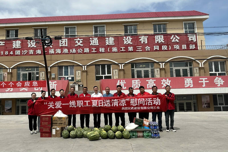 福海訊(通訊員 馬冬玲)激情飛揚紅六月,致敬最美勞動者。為傳遞公司黨委以及工會對一線職工的關心關愛,6月14日上午,兵團交建黨委副書記、紀委書記、工會主席李軍赴國道576第十師184團沙吉海-福海漁場公路工程項目開展“關愛一線職工 夏日送清涼”慰問活動。