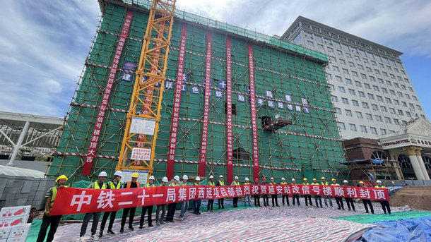 6月15日,由中鐵二十一局承建的西延鐵路13標(biāo)項(xiàng)目延安站改合建綜合信號(hào)樓主體順利封頂,正式進(jìn)入下一階段施工。