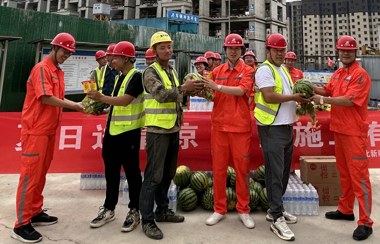 活動(dòng)中,項(xiàng)目負(fù)責(zé)人為工人送去了安全宣傳單及藿香正氣水、風(fēng)油精、礦泉水和鮮西瓜等慰問品。每到一處,該項(xiàng)目負(fù)責(zé)人都親切提醒工人在炎炎夏日中要注意防暑降溫,合理安排作息,避免疲勞上崗,切實(shí)落實(shí)好安全生產(chǎn)工作要求,確保項(xiàng)目質(zhì)量。