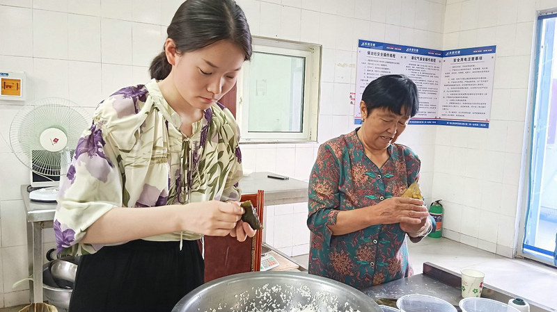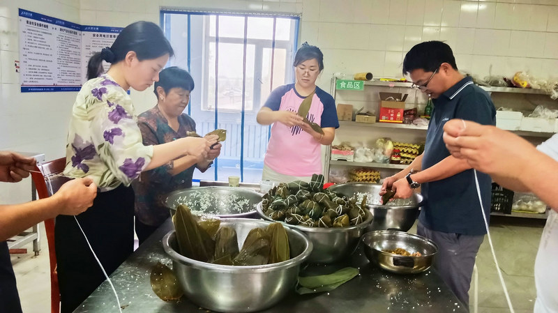 隨后, 有“包粽能手”對每個步驟進行現(xiàn)場講解——捋粽葉、做漏斗、填糯米、壓緊實、封口、扎捆,根據(jù)講解分工協(xié)作,一片片粽葉在他們的手中上下翻飛、彎曲折疊,不一會兒功夫,一只漂亮粽子瞬間成型。“我們包的不僅僅是粽子,還把快樂、幸福、安康一同包進這香香糯糯的粽子里。”參與包粽子的干部職工紛紛表現(xiàn)出了對傳統(tǒng)文化的理解認識和對當下幸福生活的喜悅。