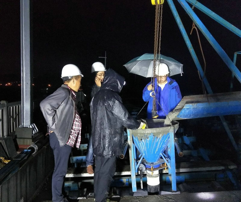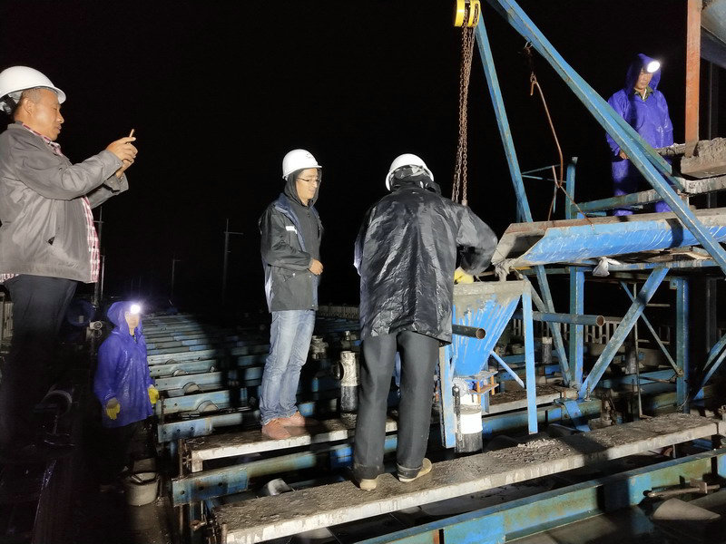 針對(duì)當(dāng)下江西贛州地區(qū)境內(nèi)連陰雨天惡劣天氣的干擾,現(xiàn)階段施工任務(wù)壓力大的“非常時(shí)期”,中鐵二十一局昌贛客專12標(biāo)項(xiàng)目二分部,主動(dòng)出擊不等不靠,想方設(shè)法超前謀劃,24小時(shí)全天候晝夜連續(xù)不斷進(jìn)行高鐵Ⅲ型軌道板施工;與此同時(shí),該部還在參建四公司的統(tǒng)籌協(xié)調(diào)下,從在建青藏線格拉擴(kuò)能改造工程項(xiàng)目部抽調(diào)了9名專業(yè)施工人員支援助戰(zhàn);對(duì)各施工作業(yè)面進(jìn)行倒排工期,不斷研討優(yōu)化施工方案,細(xì)化各工點(diǎn)物資、工裝供應(yīng)和調(diào)劑,將管段內(nèi)各個(gè)高鐵Ⅲ型軌道板施工工點(diǎn),進(jìn)行工序銜接歩驟精細(xì)化,人員分工精細(xì)化,要求保證每個(gè)施工工點(diǎn)、每個(gè)作業(yè)流程,都必須有專人負(fù)責(zé),實(shí)行“一個(gè)釘子一個(gè)眼”責(zé)任制;要求項(xiàng)目部班子成員、各部室主管,必須在軌道板施工中24小時(shí)全天候在崗值班,無條件做好安全、技術(shù)、物資、設(shè)備、工裝、自密實(shí)混凝土供應(yīng)及后勤保障各項(xiàng)工作的協(xié)調(diào)。