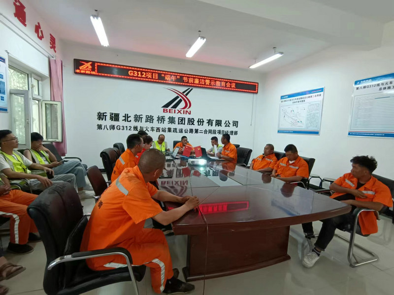下圖為:北新順通路橋G312項目部召開端午節(jié)前廉潔警示教育會議