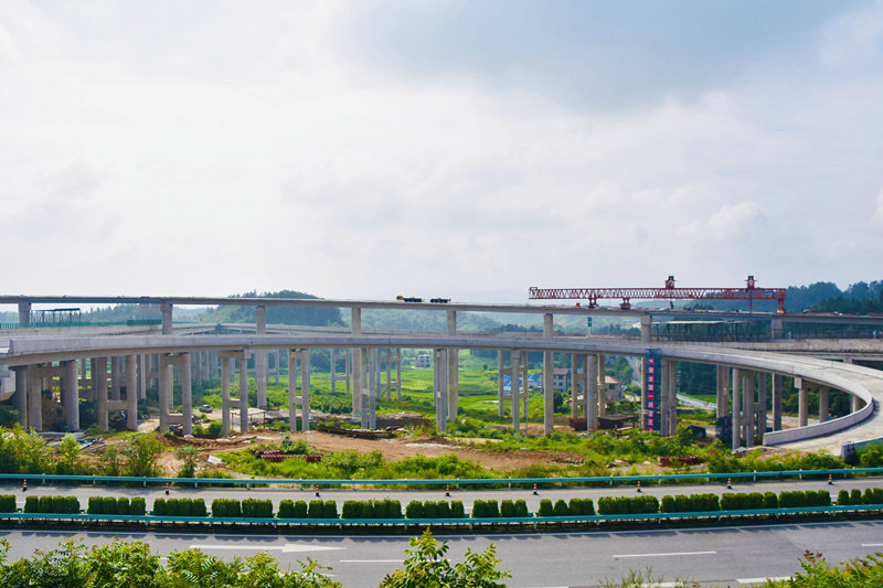 為確保節(jié)點(diǎn)目標(biāo)的順利完成,該項(xiàng)目團(tuán)隊(duì)以“平安工地”“品質(zhì)工程”為抓手,精心部署,攻堅(jiān)克難。一方面克服山區(qū)地形高差大、橋梁高度高、施工場(chǎng)地狹窄等困難,在現(xiàn)澆箱梁施工中,采用梁柱式鋼管貝雷梁支架施工??朔幱辏瑩屪デ缣?,在全線率先完成首聯(lián)現(xiàn)澆箱梁澆筑。另一方面,考慮該匝道橋曲線半徑較小,為了避免對(duì)既有高速公路造成交通影響,經(jīng)充分調(diào)研和論證后,采用架橋機(jī)分片架設(shè)再組焊施工,縮短作業(yè)時(shí)間。同時(shí),在既有線交叉施工中,他們提前謀劃,多次與高速交警及運(yùn)營(yíng)單位對(duì)接協(xié)商,完善交通組織方案。項(xiàng)目“黨員突擊隊(duì)”“青年突擊隊(duì)”積極協(xié)助臨時(shí)交通管制。除此,他們還對(duì)高處作業(yè)、臨邊防護(hù)等高風(fēng)險(xiǎn)工序加強(qiáng)全程盯控,在作業(yè)區(qū)防護(hù)棚和架橋機(jī)上均安裝了監(jiān)控設(shè)備,第一時(shí)間獲取現(xiàn)場(chǎng)動(dòng)態(tài),確保了施工安全、質(zhì)量和進(jìn)度有序推進(jìn)。