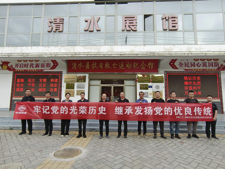 為慶祝中國(guó)共產(chǎn)黨成立102周年,6月28日,中鐵二十一局四公司天莊高速公路項(xiàng)目組織全體黨、團(tuán)員參觀了天水市清水縣抗日救亡運(yùn)動(dòng)紀(jì)念館,重溫紅色記憶,追溯先烈輝煌。