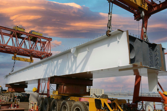 正在裝運(yùn)鋼混疊合梁 呂奎元攝