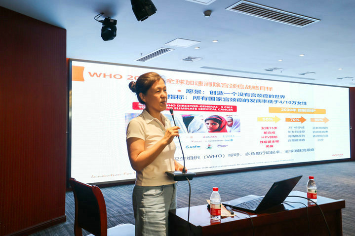 活動(dòng)主持人首先向大家介紹了目前宮頸癌疾病的防控情況,指出世界衛(wèi)生組織的全球戰(zhàn)略目標(biāo)是創(chuàng)造一個(gè)沒有宮頸癌的世界。國(guó)家十部門也聯(lián)合發(fā)布了《2023-2030年》加速消除宮頸癌計(jì)劃,鼓勵(lì)HPV疫苗接種已逐漸上升為國(guó)策。天津市婦女聯(lián)合會(huì)也積極響應(yīng)國(guó)家號(hào)召,提供健教科普平臺(tái),提高宮頸癌知曉率,并通過廣泛宣傳宮頸癌防治知識(shí)和理念,普及宮頸癌防治知識(shí),降低患病風(fēng)險(xiǎn)。