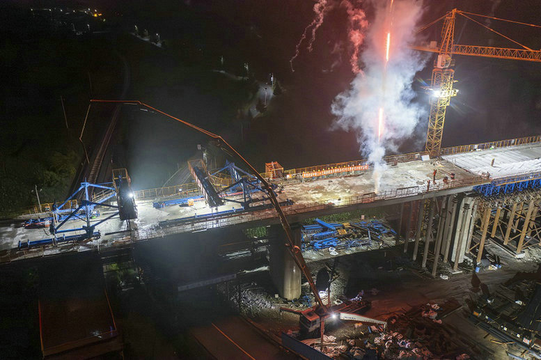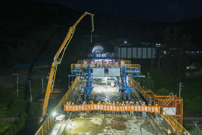 7月10日凌晨1時28分,伴隨著喜慶的鞭炮聲,最后22立方米混凝土澆筑完成。由中鐵二十三局集團承建的沈白高鐵吉林段TJ-6標湯河2號大橋32+48+32米連續(xù)梁跨越渾白鐵路順利合龍,成功完成“空中握手”,標志著管內橋梁施工取得新突破。