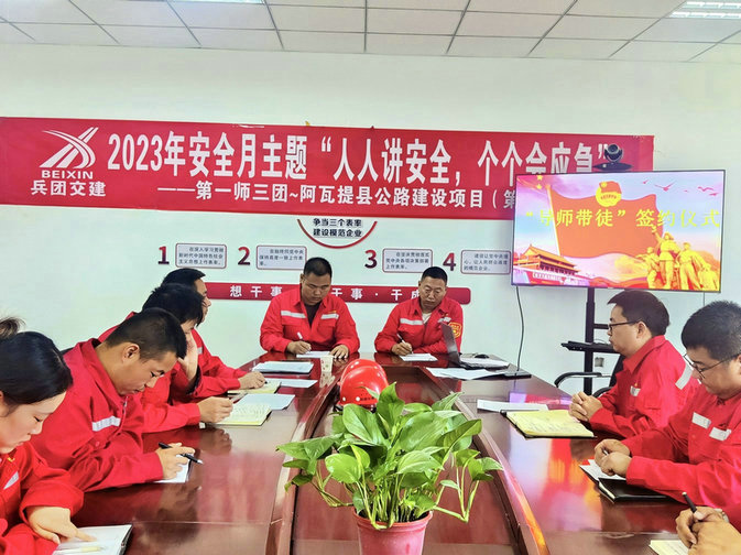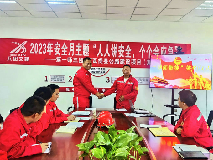 為幫助新進(jìn)員工適應(yīng)崗位,融入工作,盡早成長為企業(yè)發(fā)展的骨干人才,7月14日,兵團(tuán)交建第一師三團(tuán)-阿瓦提縣公路項(xiàng)目第一合同段開展了“傳承匠心 攜手共進(jìn)”導(dǎo)師帶徒簽訂儀式,3名青年職工與各自的導(dǎo)師簽訂了《導(dǎo)師帶徒協(xié)議書》,結(jié)成“傳、幫、帶”對(duì)子。