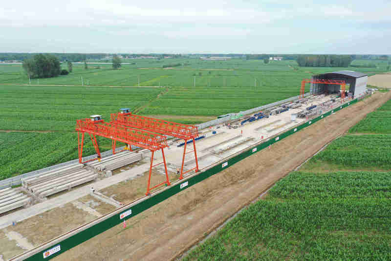 圖為 北新路橋集團四川分公司宿固5標項目梁場施工現(xiàn)場,目前已成功澆筑46片預制T梁澆筑 徐德蓉攝