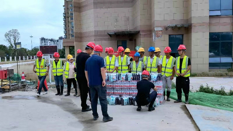 陳興江、錢曉輝一行現場為一線施工人員發(fā)放慰問品