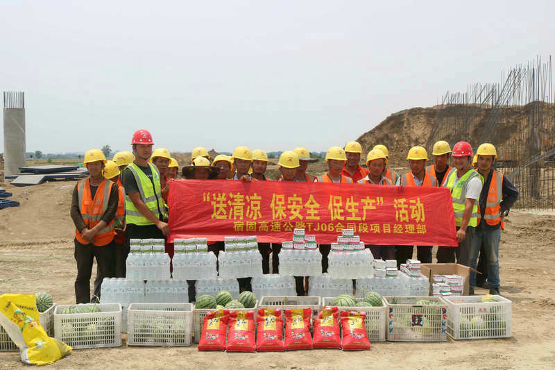 深入現(xiàn)場(chǎng)慰問(wèn),清涼度夏。入夏以來(lái),分公司各工會(huì)小組和項(xiàng)目班子成員深入各工點(diǎn)開(kāi)展“送清涼”主題慰問(wèn)活動(dòng),組織人員自行熬制綠豆湯送到施工現(xiàn)場(chǎng),方便工人飲用,共發(fā)放礦泉水10000余瓶,新鮮西瓜近3000斤,加多寶3000余瓶,藿香正氣水550盒,仁丹50盒,風(fēng)油精50盒,綠豆近百斤,覆蓋一線職工群眾近1000人次。