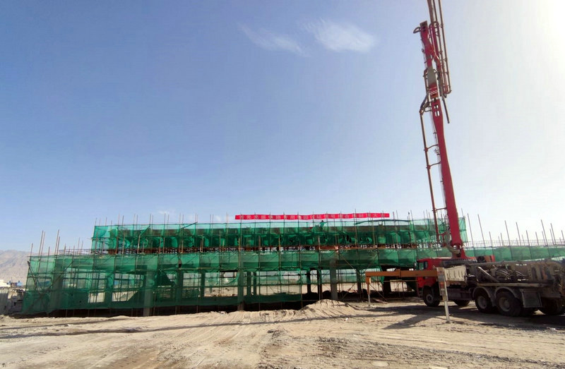 該項目位于南疆沙漠邊緣,若羌縣屬大陸性荒漠干旱氣候,夏季常年風沙肆虐,沙塵暴等惡劣天氣頻發(fā),氣溫高達40攝氏度。為應(yīng)對惡劣天氣影響,項目部在施工過程中制定了安全、質(zhì)量風險防范措施,設(shè)專人進行現(xiàn)場管理與盯控,克服高溫、沙塵暴等不利因素,積極組織施工,保障了工程結(jié)構(gòu)順利封頂。