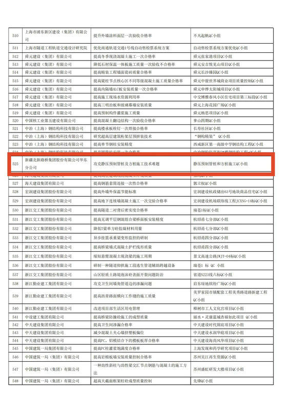 作為北新路橋集團首個進軍上海區(qū)域的項目,上海國科G60數(shù)字智能產(chǎn)業(yè)園項目QC小組成員積極探索新技術(shù),交流新工藝,加強技術(shù)創(chuàng)新。近日,該項目申報的《攻克靜壓預(yù)制管樁及方樁施工技術(shù)難題》獲得2023年上海工程建設(shè)質(zhì)量管理協(xié)會優(yōu)秀QC小組成果三類成果獎,這是北新路橋集團在上海區(qū)域獲得的首個獎項,也是國科項目在提高工程質(zhì)量、降本增效方面的重要舉措。