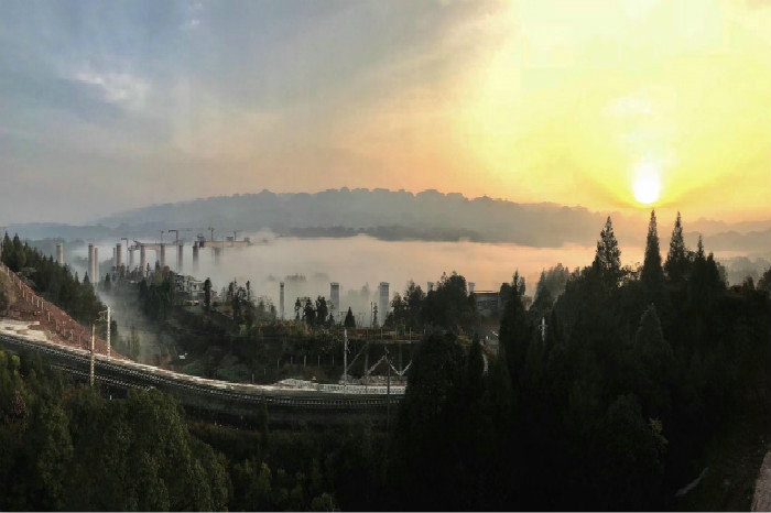 清晨中的施工架梁現(xiàn)場(chǎng)