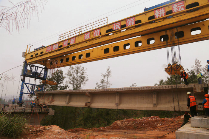 T梁穩(wěn)穩(wěn)的落在預(yù)制墩上