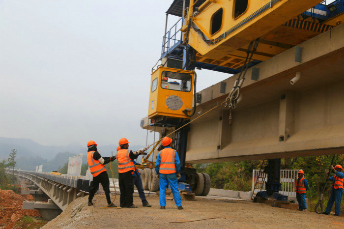 架橋機(jī)進(jìn)行取梁作業(yè)