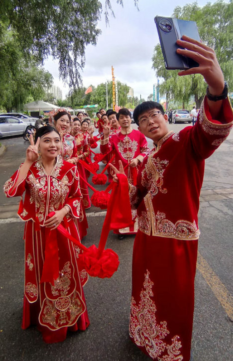 “今天是個好日子,心想的事兒都能成……”歌聲是對新人的美好祝福,也是大家的共同期待。緣定新時代、奮進新征程,攜手一起向未來。 (楊景霜 宋燕軍)
