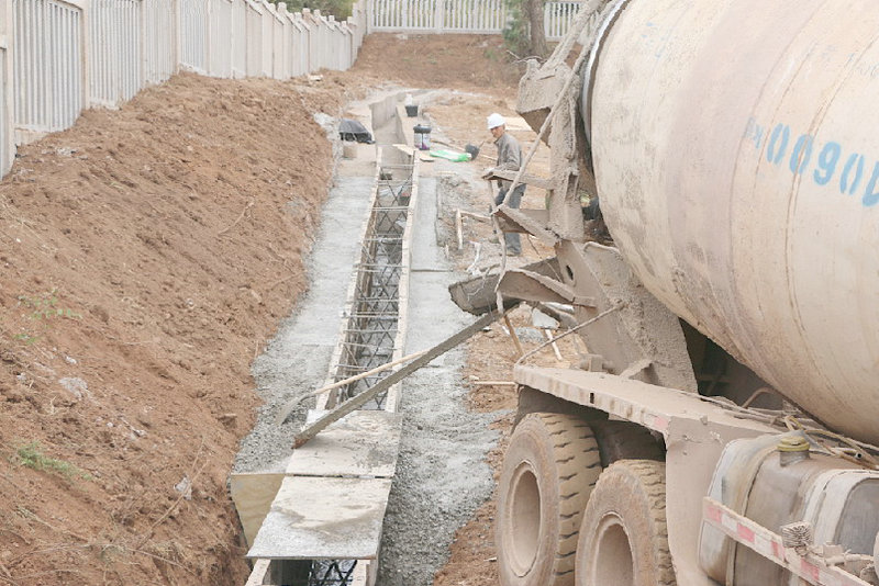 拉市海車(chē)站站場(chǎng)病害整治工程正在進(jìn)行排水溝混凝土澆筑施工