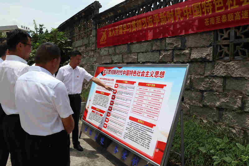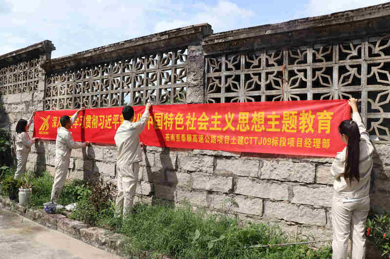 此外,該黨支部還精心制作主題教育展板、宣傳橫幅及海報等,使全體黨員在“看、學、思、悟”過程中系統學習了習近平新時代中國特色社會主義思想的形成過程、科學體系、實踐要求和重要意義。黨員奚太龍在看完展板后說道:“我將在今后的工作中更加嚴格要求自己,不斷創(chuàng)新工作方法,發(fā)揮先鋒模范作用,以良好的黨性修養(yǎng)和昂揚的精神風貌全身心投入到工作中,為將蒼泰高速公路修建成一條品質路、共富路貢獻自己的力量”。