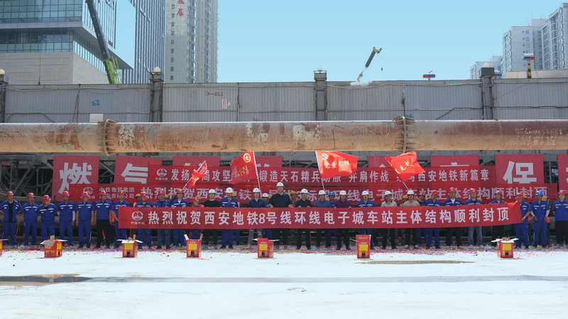 7月31日,隨著最后一塊頂板澆筑完畢,標(biāo)志著中鐵物貿(mào)西安公司在供的西安地鐵8號(hào)線環(huán)線電子城車(chē)站項(xiàng)目主體結(jié)構(gòu)順利封頂。