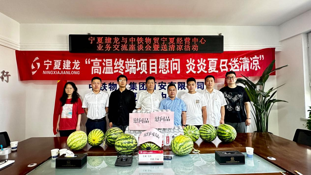 近日,中鐵物貿(mào)西安公司寧夏經(jīng)營中心迎來寧夏建龍龍翔鋼鐵有限公司“夏送清涼”并開展交流座談。