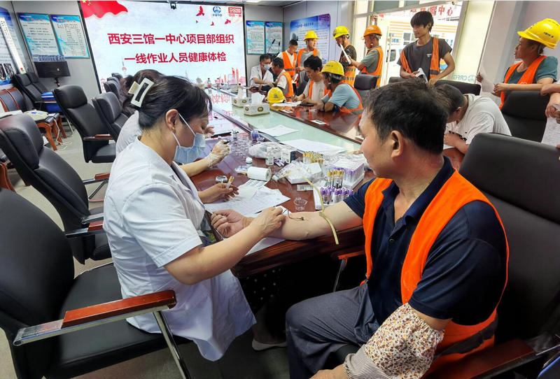 為切實(shí)維護(hù)作業(yè)人員的身心健康,提高大家的健康意識(shí),8月16日,中鐵一局西安三館一中心項(xiàng)目組織開(kāi)展了“健康體檢進(jìn)工地 情暖一線工友心”活動(dòng),為80余名一線作業(yè)人員進(jìn)行免費(fèi)的健康體檢。