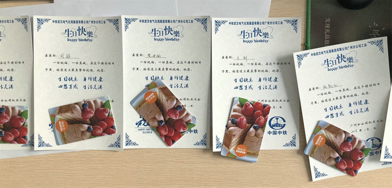 為員工贈送生日禮品,是廣州分公司工會2015年工作的創(chuàng)新之舉,充分體現(xiàn)了公司對員工的關(guān)愛。天南海北的電氣化人,來自不同的地方,操著不同的口音;雖然有著不同的家庭背景,不同的人生經(jīng)歷;雖然從事著不同的崗位,擔(dān)任著不同的職務(wù),但是我們有一個共同的家——廣州分公司。在今后的每個月里,公司的生日禮物會陸續(xù)送到每一位同志的手里,給大家送去生日的祝福。