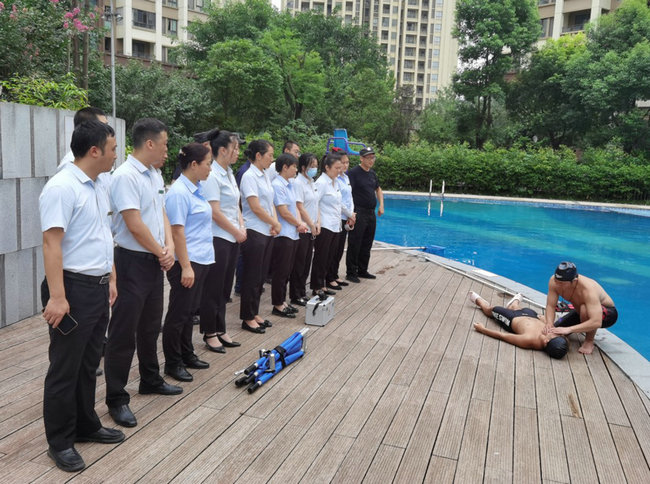 演練結(jié)束后,專業(yè)救生員在現(xiàn)場對項目工作人員進行了防溺水現(xiàn)場培訓(xùn),使廣大員工能夠有效應(yīng)對游泳池突發(fā)性應(yīng)急情況,提高溺水應(yīng)急反應(yīng)能力和處置水平。