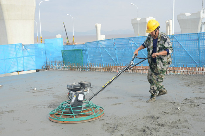 工人在震動(dòng)混凝土 呂奎元攝
