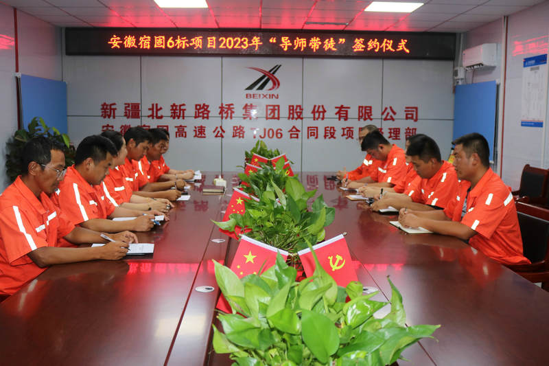 北新路橋集團(tuán)長沙分公司安徽宿固6標(biāo)項(xiàng)目舉行的“導(dǎo)師帶徒”活動(dòng)啟動(dòng)儀式暨簽約儀式