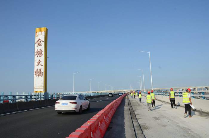 在拼寬橋前期的樁基、承臺、橋墩施工中,緊鄰日均行車6萬輛的金塘大橋,安全風險很高。他們挑選操作技術(shù)過硬的駕駛員操作履帶吊振插鋼護筒,吊裝鋼筋籠、模具,遇到大風、大到暴雨和臺風,提前停止施工,并在金塘大橋兩側(cè)增設(shè)防護欄,指定專人指揮作業(yè),落實安全責任,消除各種安全隱患,保證了每道工序的順利完成。