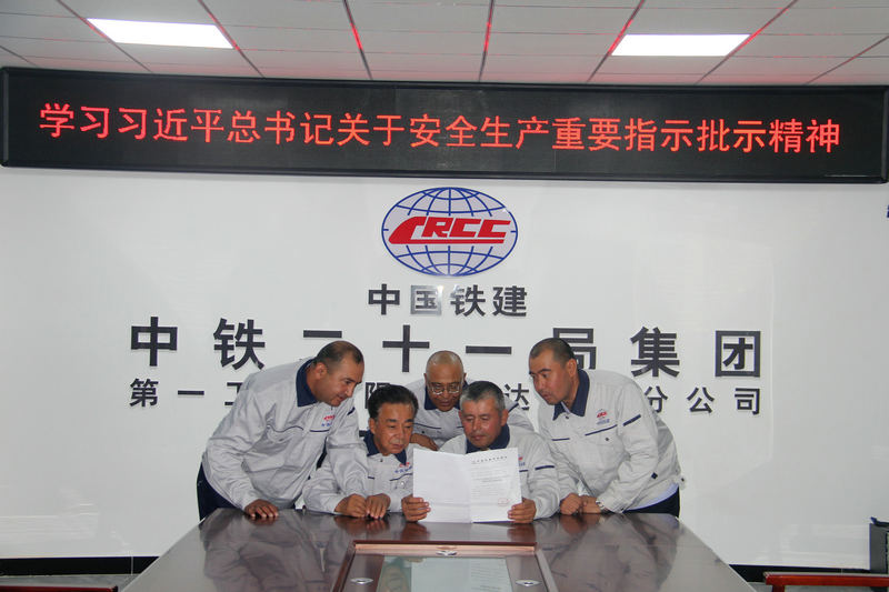 9月12日,中鐵二十一局一公司達(dá)坂城分公司三葛莊道碴專(zhuān)用線裝車(chē)班組的少數(shù)民族職工認(rèn)真學(xué)習(xí)領(lǐng)會(huì)習(xí)近平總書(shū)記關(guān)于安全生產(chǎn)的重要指示批示精神,進(jìn)一步增強(qiáng)安全意識(shí)。