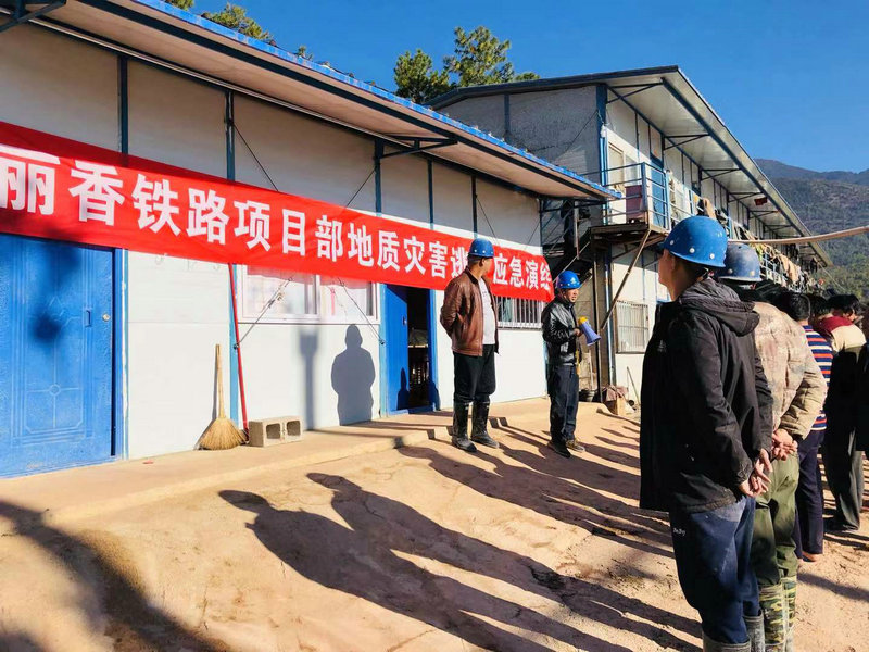 該項目部承擔(dān)施工的麗香鐵路站前I標(biāo)段,位于麗江市南側(cè)和西側(cè),全長21.52公里。該地區(qū)位于云貴高原與青藏高原的連接部位,地處中甸至大理地震帶上,緊鄰青藏高原地震區(qū),是我國地震最為活躍的地方。同時,云南屬環(huán)太平洋地震帶、歐亞地震帶的組成部分,處于印度洋板塊與歐亞板塊碰撞帶東側(cè),是中國破壞性地震較多、受災(zāi)特別頻繁和嚴(yán)重的省份之一。為切實保障員工生命安全,中鐵二十一局集團三公司麗香鐵路項目部,此前曾先后按照隧道施工、橋梁施工等、宿舍休息等,多次組織有針對性的地質(zhì)災(zāi)害逃生應(yīng)急演練。此次舉行的地質(zhì)災(zāi)害逃生應(yīng)急演練,主要是教育全體員工,在發(fā)生地震災(zāi)害時,如何進(jìn)行安全躲避,如何進(jìn)行有序撤離,如何展開自救、互救和救援支援。