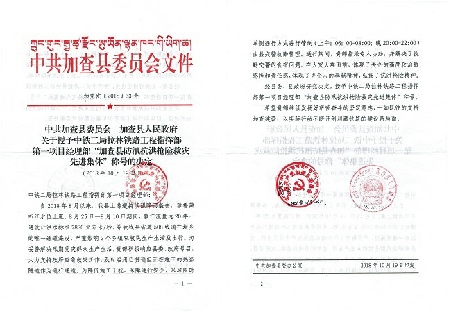 本站西藏訊(通訊員 商成湘 陳達(dá)源)近日,中鐵二局五公司拉林鐵路一項目獲西藏加查縣委、縣人民政府授予的“防汛抗洪搶險救災(zāi)先進(jìn)集體”榮譽稱號。