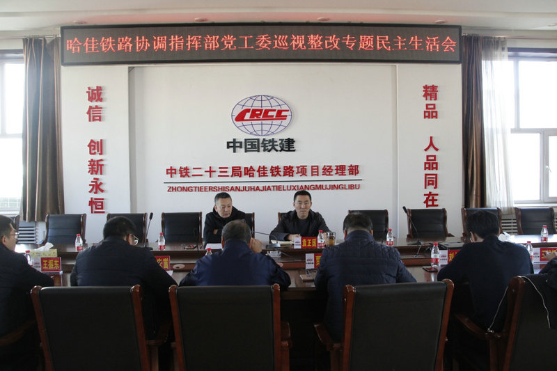 11月7日上午,為全面落實(shí)巡視整改工作和項(xiàng)目管理規(guī)范的要求,以更高標(biāo)準(zhǔn)、嚴(yán)要求推進(jìn)項(xiàng)目管理工作,哈佳鐵路協(xié)調(diào)指揮部在8樓會(huì)議室召開(kāi)了巡視整改專(zhuān)題民主生活會(huì)。會(huì)議由中鐵二十三局二公司副總經(jīng)理、哈佳鐵路協(xié)調(diào)指揮部黨工委書(shū)記王曉軍主持,黨工委領(lǐng)導(dǎo)班子成員參加了會(huì)議。