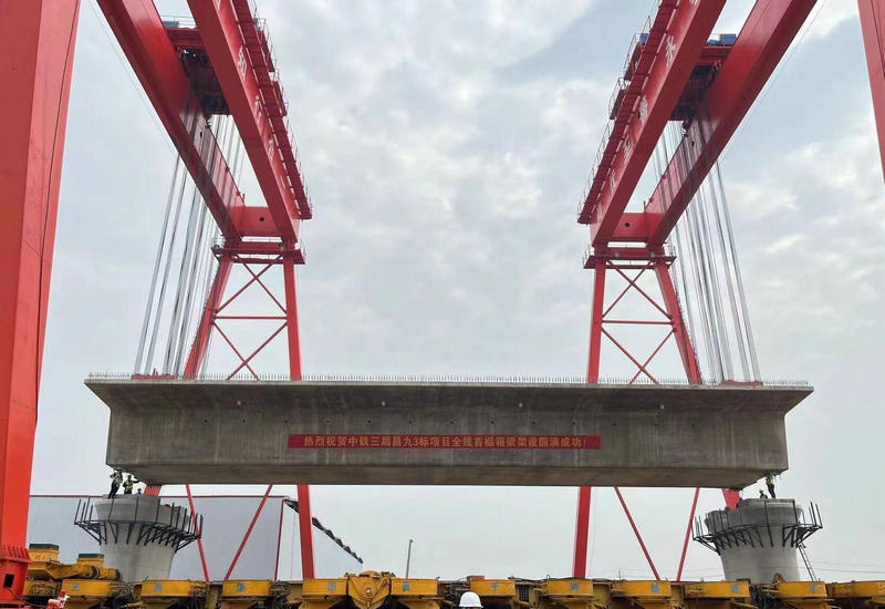 (江西新建訊)10月27日上午,在南昌市新建制梁場,隨著一榀長32米,重697噸的箱梁穩(wěn)穩(wěn)地落在修河特大橋500#與501#橋墩之間,標(biāo)志著中鐵三局昌九高鐵3標(biāo)線橋分部全線首榀箱梁圓滿架設(shè),昌九高鐵3標(biāo)架梁正式拉開序幕,為后續(xù)的橋面系施工奠定了基礎(chǔ)。
