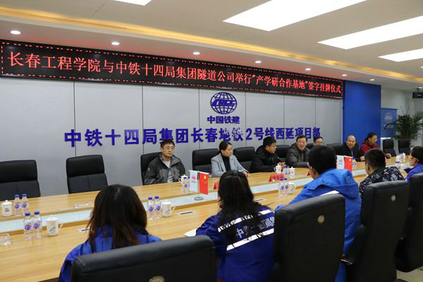 長春工程學院土木學院院長張利教授、教務處副處長李長雨教授、中鐵十四局集團長春辦事處主任胡兵和長春地鐵2號線西延線項目書記龔金全等領導及全體員工參加了儀式?;顒佑晌餮泳€項目負責人周松主持。