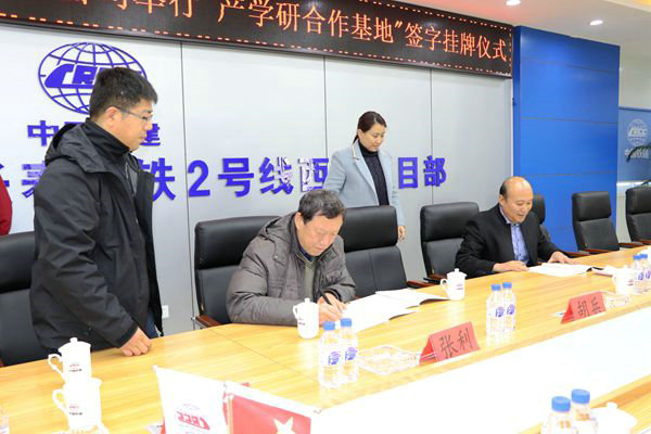 中國鐵路工程建設網(wǎng)訊(通訊員 王福生 報道)11月14日上午,中鐵十四局集團隧道公司長春地鐵2號線西延項目部與長春工程學院舉行 “產學研合作基地”簽字掛牌儀式