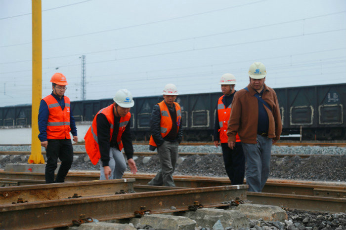 在項(xiàng)目部人員的引導(dǎo)下,驗(yàn)收組一行主要檢查了黔江鋪架基地長軌存放區(qū)基地群吊、用電安全、排水設(shè)施及存軌場整體外觀等設(shè)施建設(shè)情況。