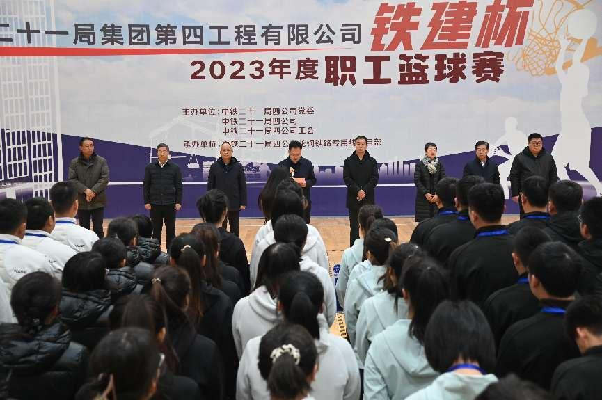 12月25日上午,在激昂的運動員進行曲中,中鐵二十一局四公司“鐵建杯”職工籃球賽在灃西云谷籃球場上拉開了序幕。中鐵二十一局四公司黨委書記、執(zhí)行董事劉忠厚,黨委副書記、工會主席段榮福,特級項目經(jīng)理、副總經(jīng)理卜宗舉,安全總監(jiān)柳倉太,副總經(jīng)理、總會計師許海英,紀委書記李興軍,一級項目經(jīng)理、銀昆高速公路項目部項目經(jīng)理惠兵,龍鋼鐵路專用線項目部項目經(jīng)理來平出席開幕式。來自公司所屬各單位的22支代表隊,234名隊員將參加為期4天的激烈比賽。