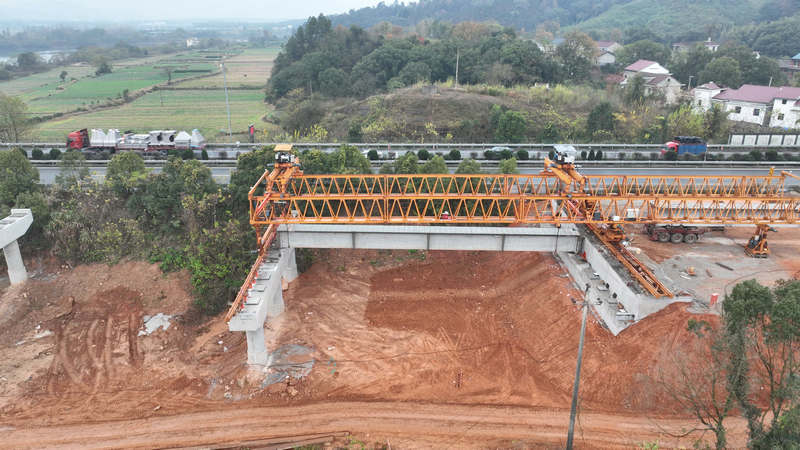 圖說:北新路橋集團(tuán)長沙分公司 滬昆B1標(biāo)項目胡家榨大橋26#臺架梁施工 孫鵬攝