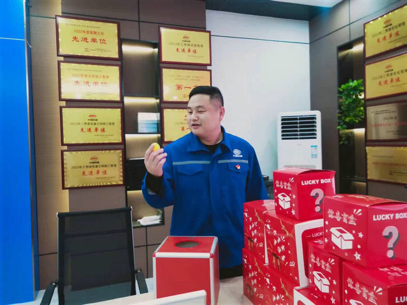 “阮經(jīng)理工作思路敏捷、創(chuàng)新超常,令員工們刮目相看,他理解員工的心理活動,這次抽獎活動的獎品,都與辦公人員的工作所需息息相關(guān),就連看上去的小型頸椎按摩器似乎與辦公人員無關(guān),其實也密切相關(guān)。阮經(jīng)理在組織籌辦抽獎會議研究時說:坐辦公室的人員都有不同程度的精準(zhǔn)病,價格低廉、意義不小。又不違背紀律。話音剛落大家齊刷刷舉手通過。”活動結(jié)束后,項目部全體人員歡聚在員工食堂,憶過往、話開拓,一起舉杯在異鄉(xiāng)度過像家鄉(xiāng)一樣辭舊迎新、凝心聚力的快樂祥和節(jié)日。